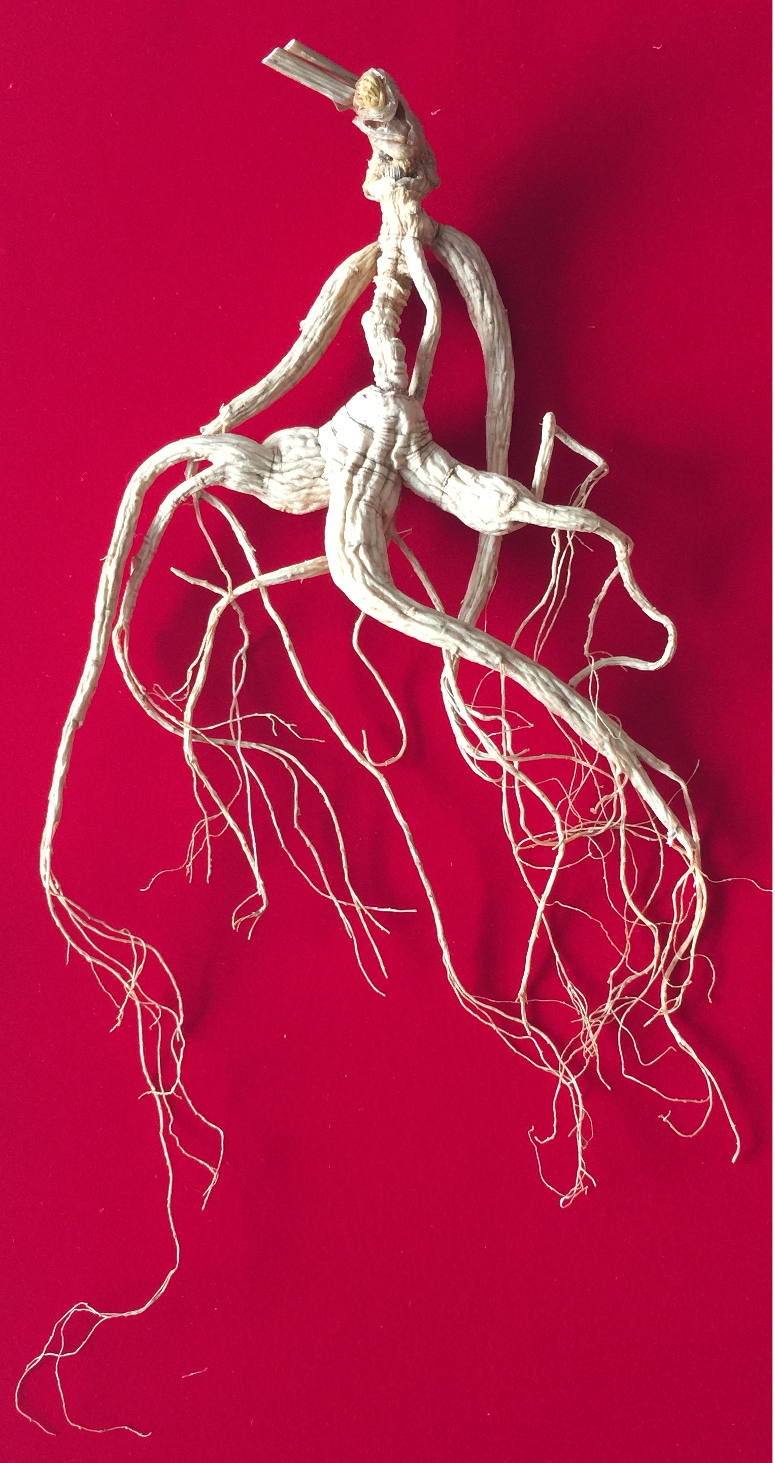体:人参的主根,即肩头到较大支根的部分,通常分为六种形体,即灵体、疙瘩体、顺体、笨体、过梁体、横体。