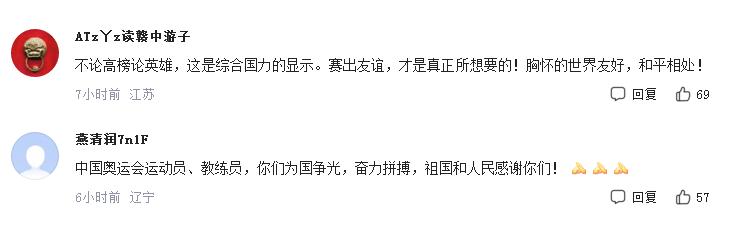 中国体育代表团的高光表现,也赢得了网友的称赞。