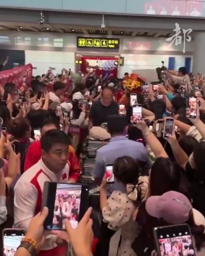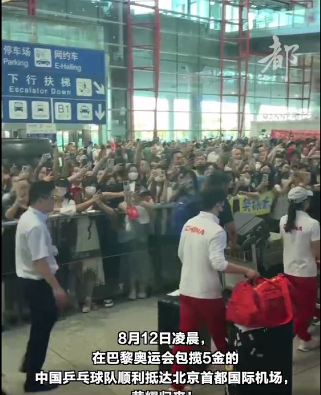 8月12日凌晨,刚刚在巴黎奥运会包揽5金的中国乒乓球队顺利抵达北京首都国际机场,荣耀归来,上千名球迷在机场接机!中国乒协主席刘国梁带队,马龙、樊振东等风尘仆仆到达。