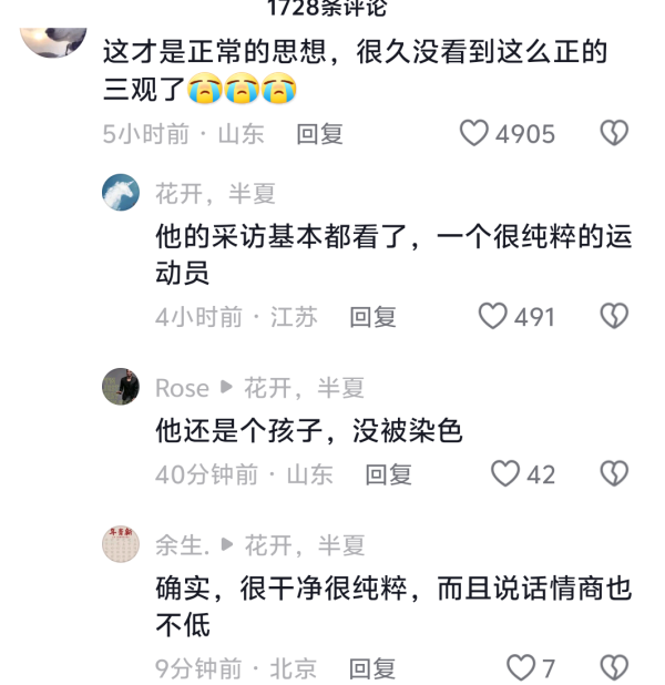 潘展乐的态度,引得无数网友点赞,认为潘展乐“一身正气,未来可期”。