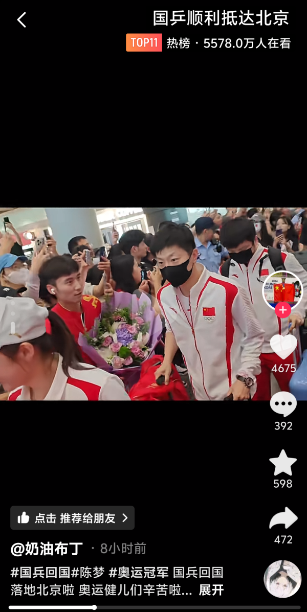 不仅仅是中国体育代表团的奖牌数引人关注,其他的与奥运相关的消息,也都在“热搜之列”。例如,我们的国乒队员回国。