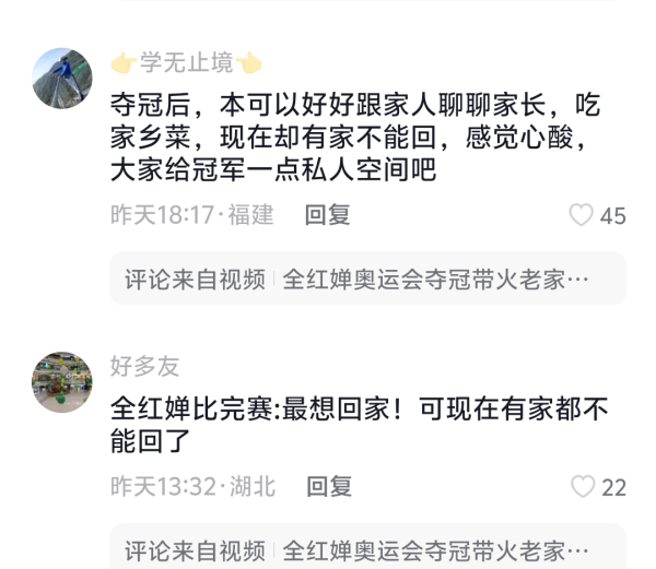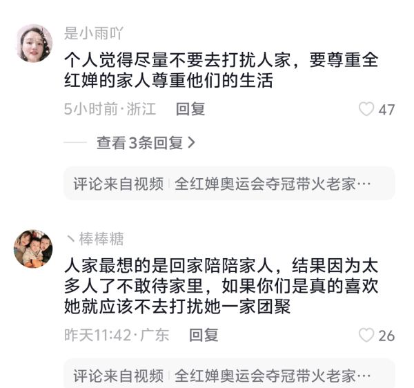 她的老家广东省湛江市迈合村,出现了一波“全红婵热”。虽然全红婵夺冠带火了自己的家乡,全红婵的母亲在一次采访中却表示,由于人太多了,根本不敢让全红婵回家。