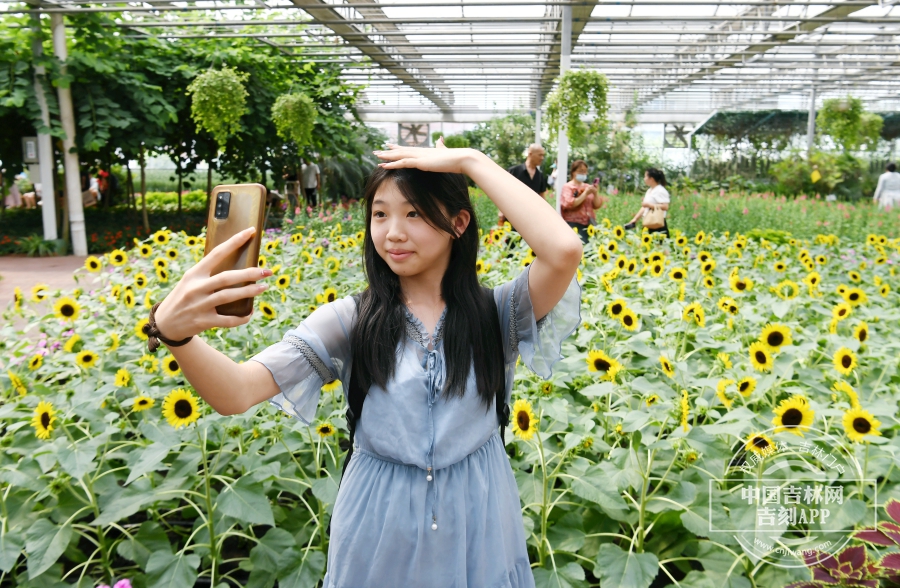 参观者在鲜切花展区自拍留念