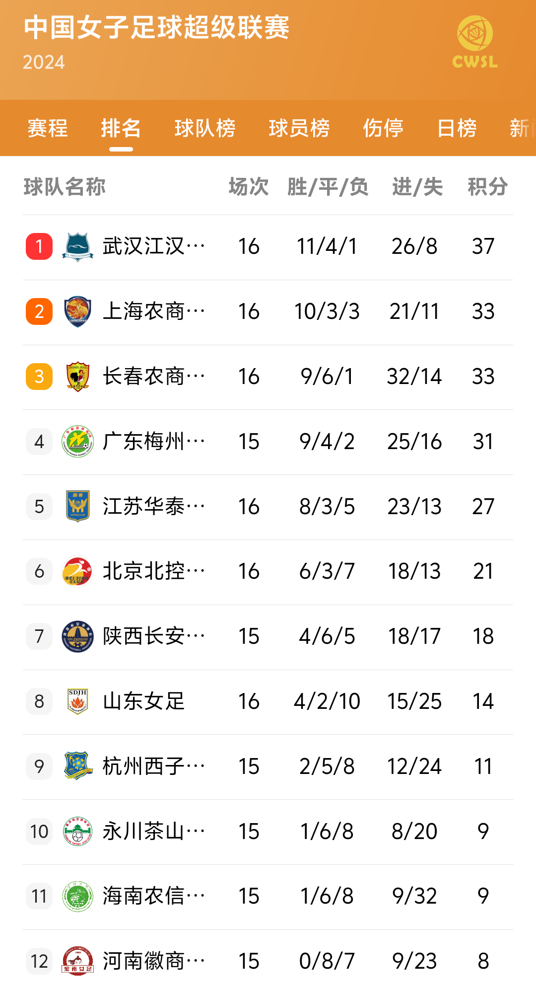 本轮比赛结束,长春女足以33分战绩,暂列积分榜第三。