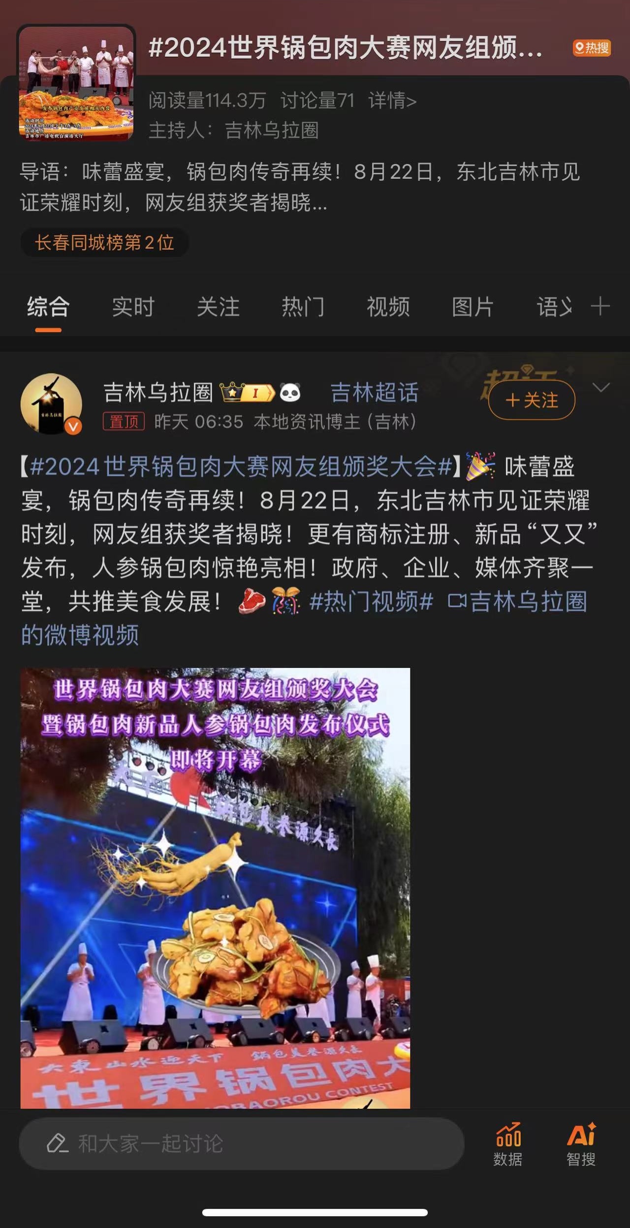 让我们先将时光回溯至不久前,吉林市那场举世瞩目的世界锅包肉大赛,想必仍深深烙印在大家的脑海之中。