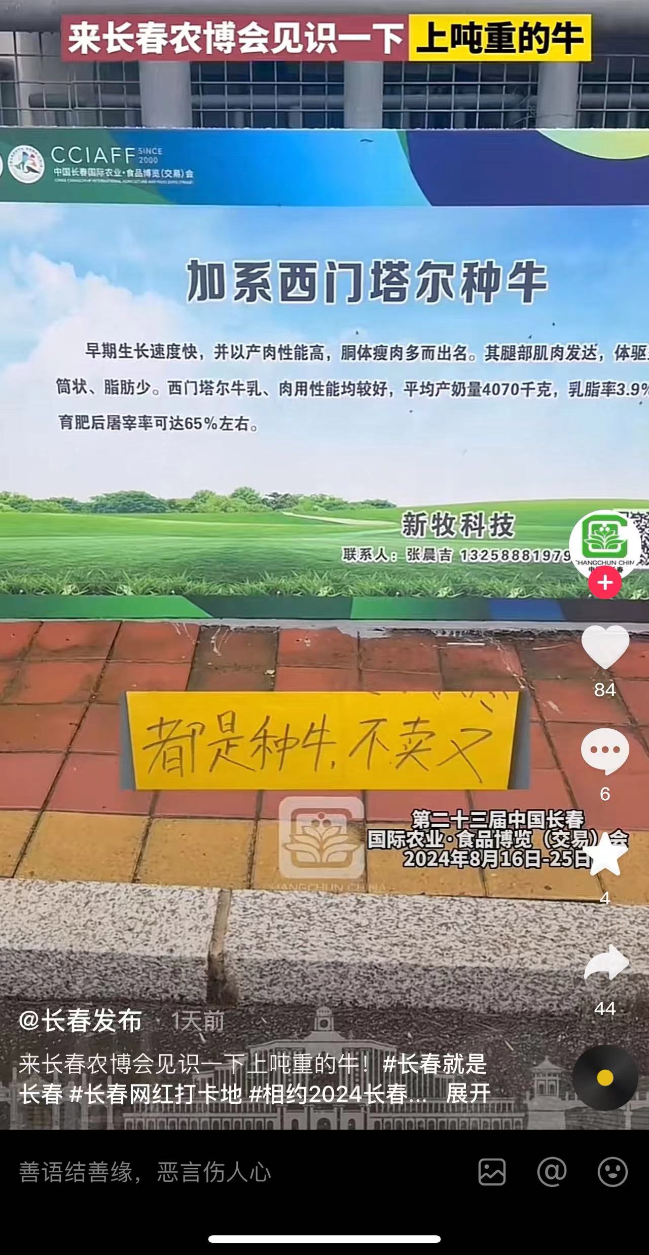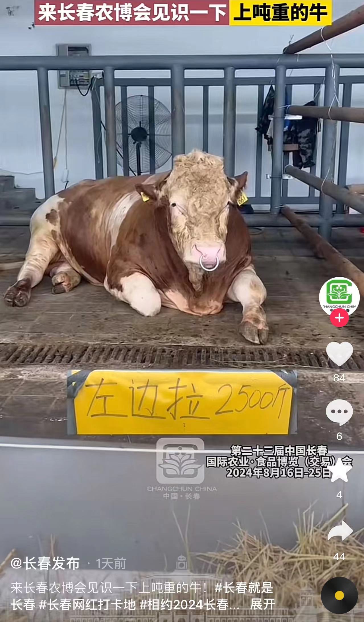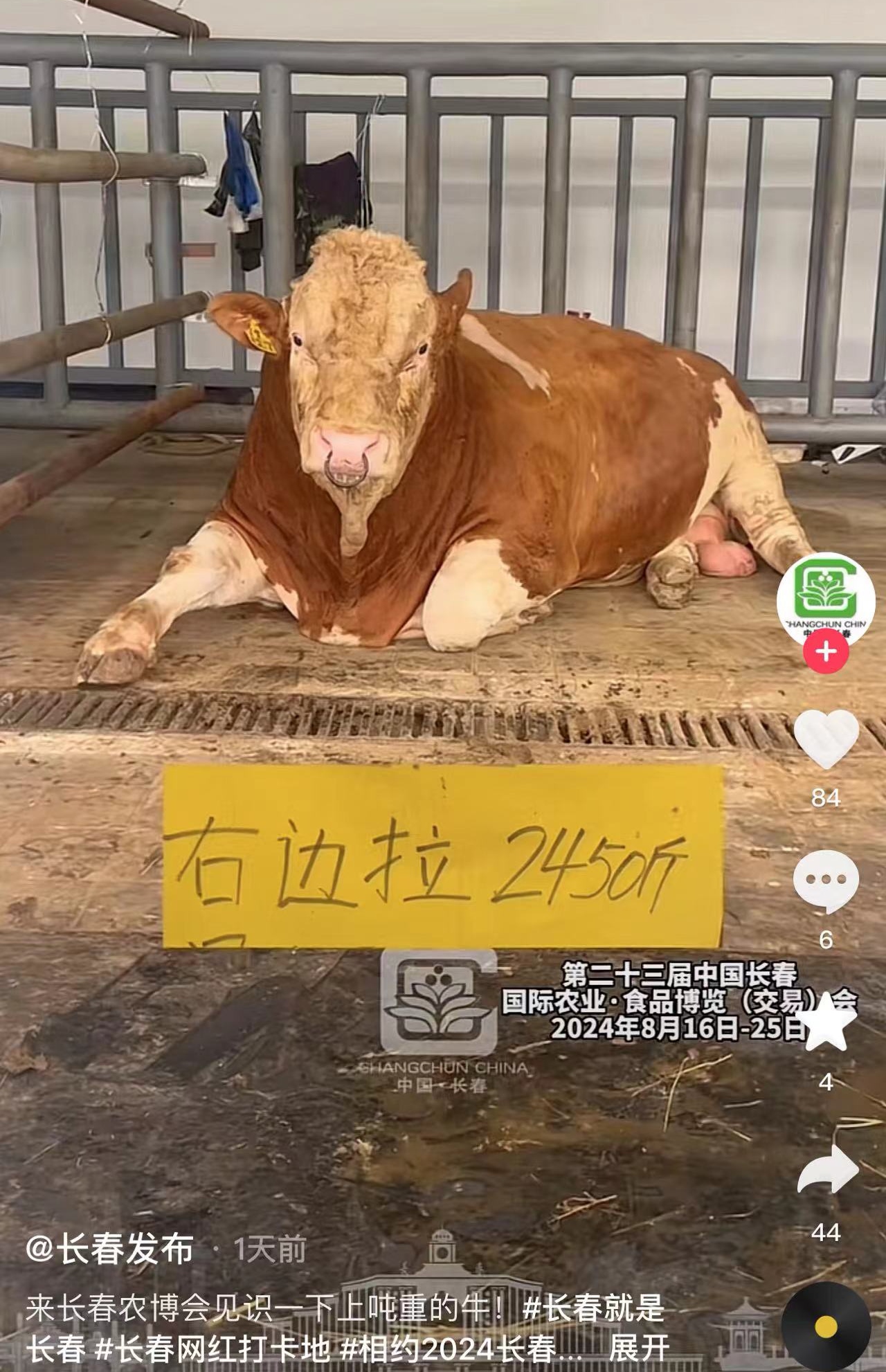 此外,长春农博会上体重惊人的加系西门塔尔种牛同样引人注目。