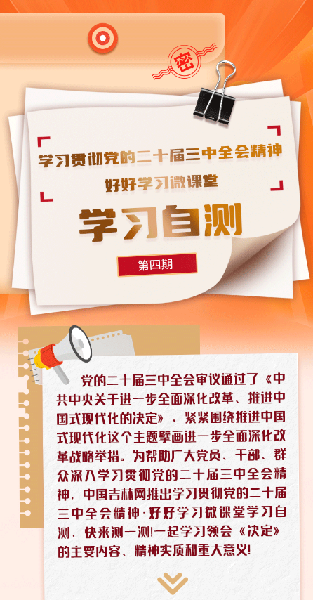 学习贯彻党的二十届三中全会精神·好好学习微课堂|学习自测(四),看看你能答多少分!