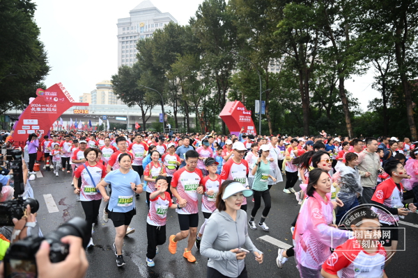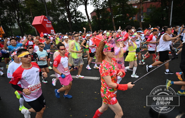 随着发令枪响,参赛者们如离弦之箭般冲出起跑线。随着比赛进行,长长的人流织就出斑斓的彩带。