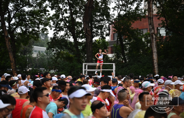 在起点处,参赛选手们从四面八方向这里汇聚,他们有的做着压腿、短跑等赛前热身运动,有的则拿起手机拍照留念,等待开跑那一刻。