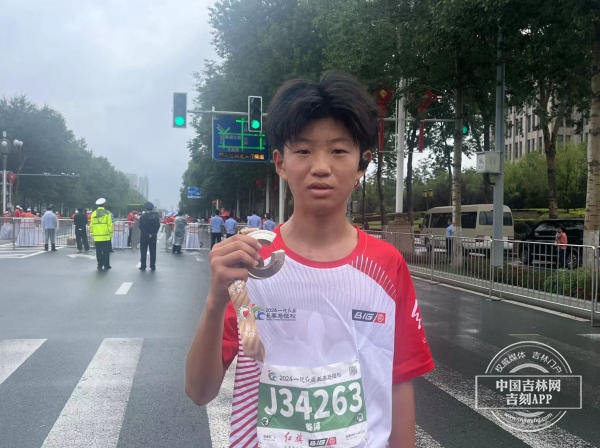 来自吉林省体校的15岁男孩姜博,和父母参加了2024长马,并幸运获得了第二名!