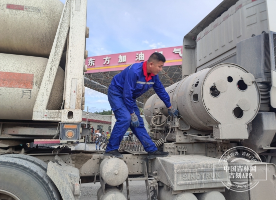 在靖宇县东方石油天然气有限公司,司机赵连文穿着防静电服装对牵引头进行出车前的细致检查。“我们已经养成了良好的习惯,每次出车前,都要对车辆的轮胎、车灯、管路等进行安全检查,确保车辆运输的安全。”赵连文说。