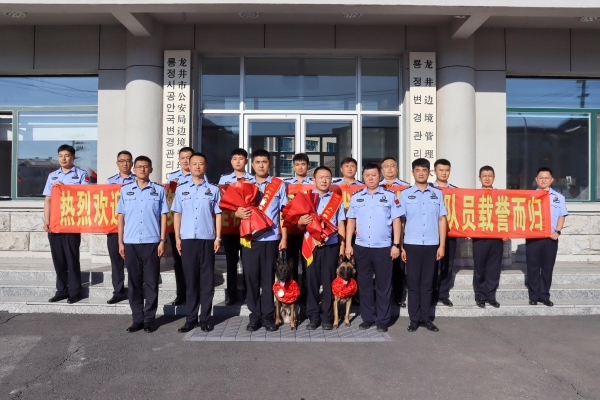 近日,龙井边境管理大队热烈欢迎参加国家移民管理机构第二届警犬实战大比武人员载誉而归。此次警犬比武竞赛,龙井边境管理大队2名训导员携警犬代表吉林出入境边防检查总站获得了团体第三名、口岸限定区域毒品查缉单项第三名的优异成绩。