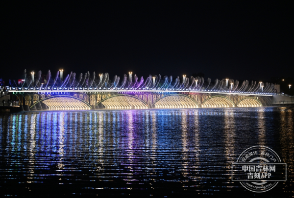长春南湖大桥音乐喷泉 中国吉林网 张秋磊 摄