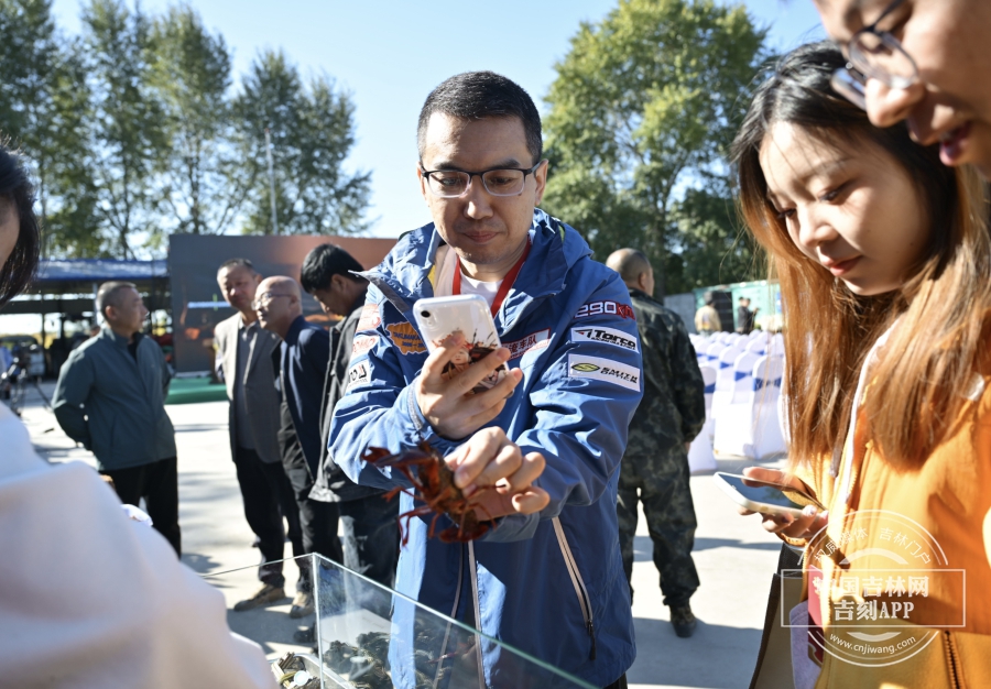 采访团成员正在拍摄“镇赉三嫩”之一的小龙虾