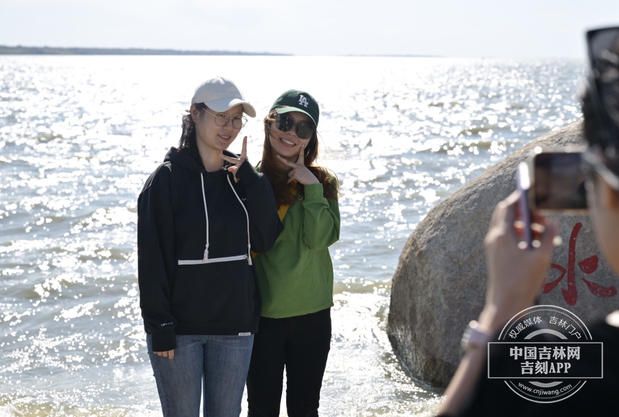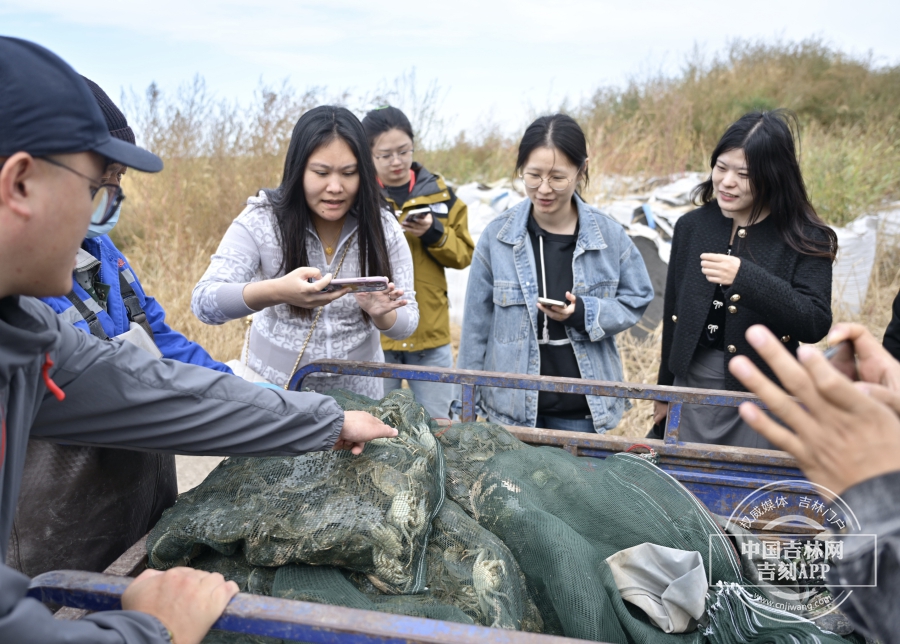 采访团成员被眼前美景震撼,在查干湖打卡拍照