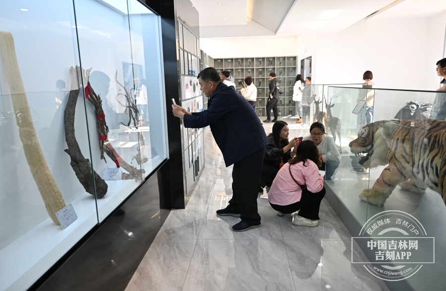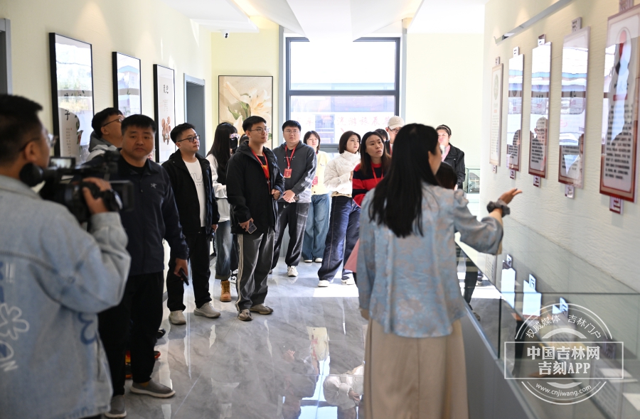 白山市靖宇镇靖安村岐黄文化园,采访团成员了解中药