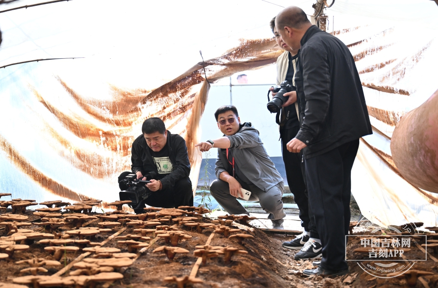 白山市靖宇镇靖安村岐黄文化园,采访团成员了解灵芝的种植