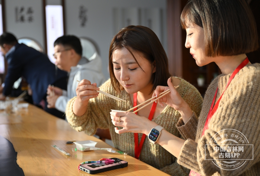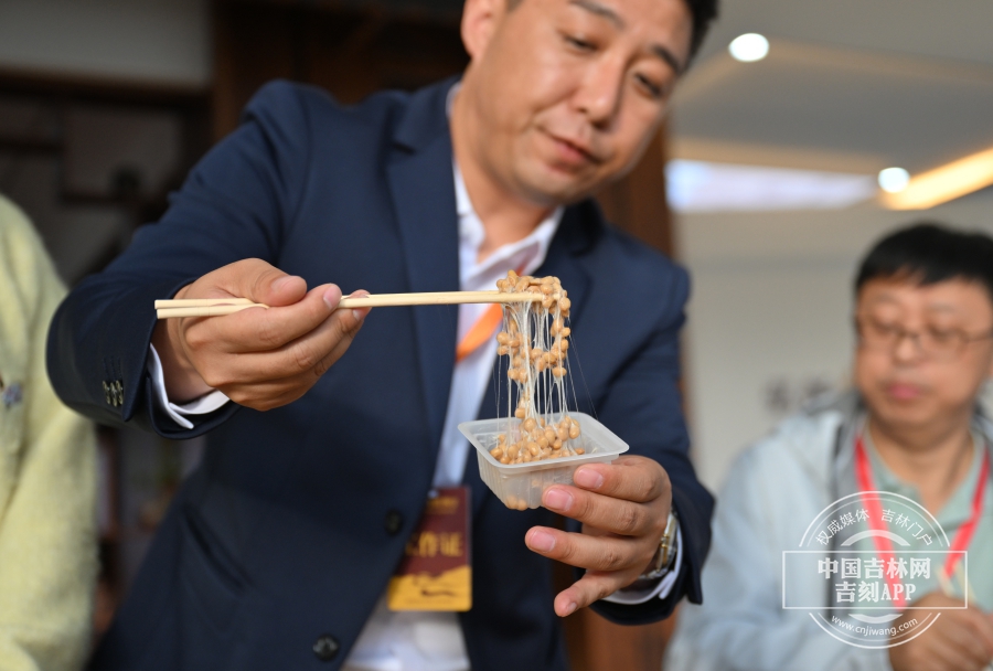 敦化市雁鸣湖大豆生物科技有限责任公司,采访团成员品尝纳豆