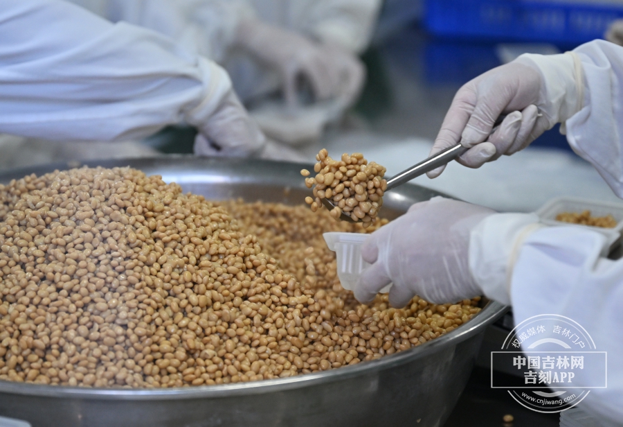 敦化市雁鸣湖大豆生物科技有限责任公司,工作人员正在包装纳豆