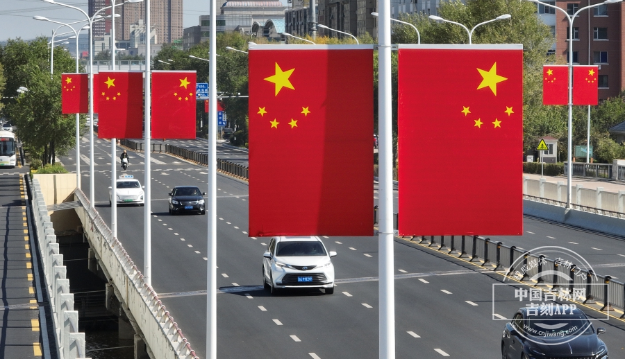国庆将至,长春街头陆续挂起了鲜艳的五星红旗,洋溢着浓浓的节日氛围。