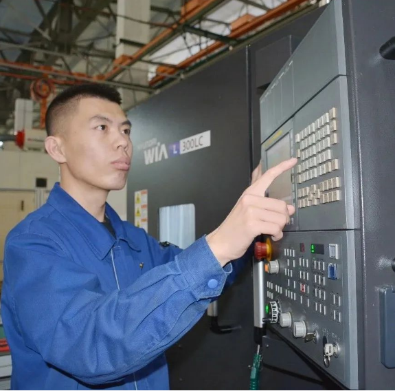 在中国兵器集团吉林江机特种工业有限公司机加分厂数控加工中心,轰鸣的机器声和刺耳的切割声此起彼伏。一台车床前,吉林省特等劳动模范、吉林江机特种工业有限公司机加分厂数控车班工人付春鹏正在熟练地对系统操作面板前那些字母、数字、方向键等按键进行编程。40秒后,机床运作起来机床,火花四射,铁屑飞溅,变成一个个立体生动的零件。