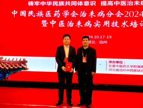 2024年10月17日—19日,由中国民族医药学会主办,长春中医药大学附属第三临床医院、河北省沧州中西医结合医院承办的中国民族医药学会治未病分会2024年学术年会在河北沧州召开。长春中医药大学中西医结合学院院长、长春中医药大学附属第三临床医院副院长黎明全改选为中国民族医药学会治未病分会会长。
