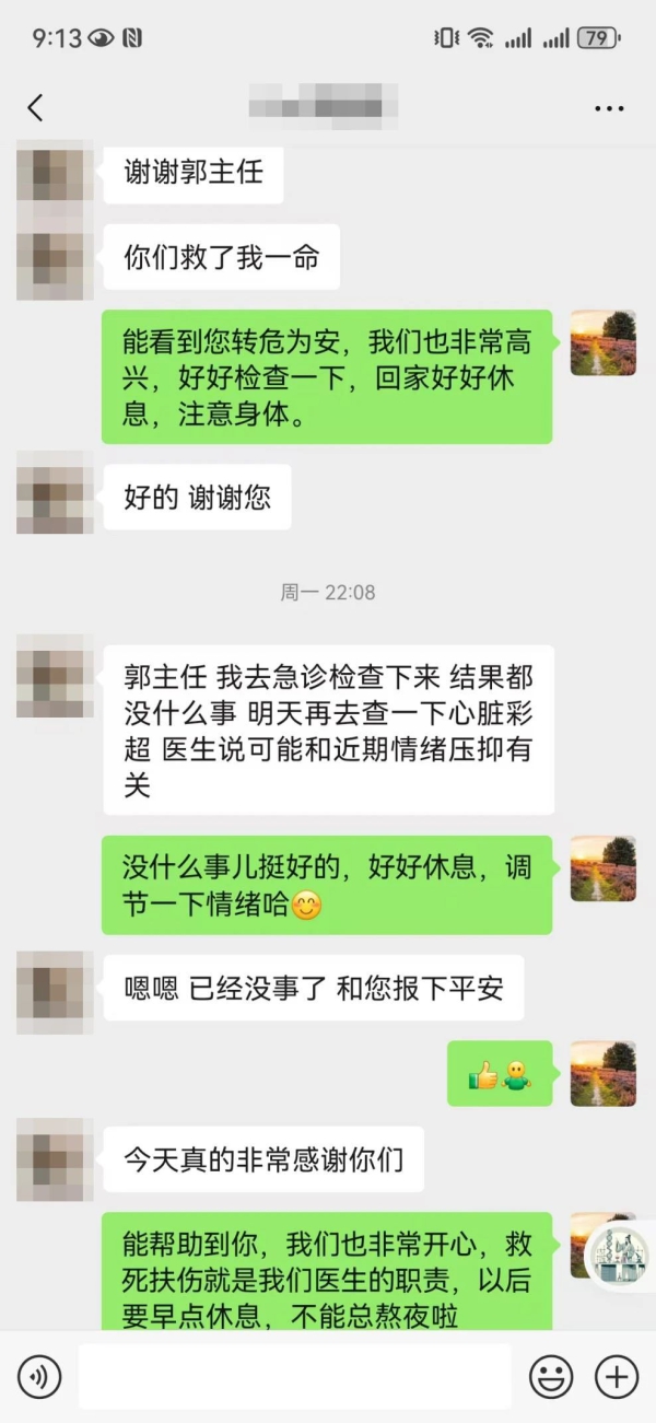 经孙丽平教授听诊,患者心率降至正常。医生们耐心地安慰患者,以缓解他的紧张情绪,并建议落地后立即前往医院完善检查。孙晓舟、孔一卜医生一直陪伴在患者身边,密切关注他的症状及生命体征,直至平安落地。患者精神状态恢复正常,大家悬着的心终于放下……