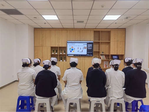 当日下午,在老年医学科和中西医结合科疗区,护士们借助现代化手段开展了一场 “健康科普直播” 学习活动。她们通过扫描二维码,轻松参与到联盟医院 —— 吉林大学第一医院老年病科的健康科普直播中,与专家团队一同学习新理念、新知识,进一步提升自身专业素养。