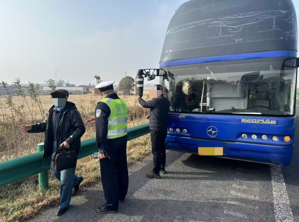 到达现场后,为避免发生事故,民警迅速在大客车后方设置好安全防护,开警灯、鸣响警报,提示后方来车注意避让、减速慢行。经询问客车驾驶员得知,该车为承载43名乘客从农安前往吉林,行车过程中突发故障无法行驶,且短时间内无法完成维修。民警立即协助联系车辆所属客运公司,调配车辆对滞留旅客进行转运。等候转运车辆期间,民警将所有司乘人员转移至护栏外侧,全程安抚滞留旅客情绪,提醒大家切勿随意走动,以免发生危险。