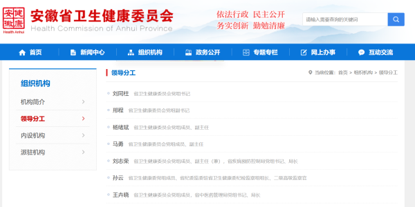 安徽省卫健委党组书记、主任两个职务此前均由刘同柱担任。更新后的安徽省卫健委官网“领导分工”资料显示,刘同柱不再担任安徽省卫健委主任一职。