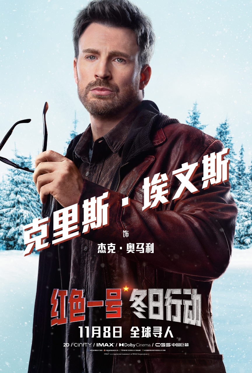 由长影集团译制片制作有限责任公司译制的电影《红色一号:冬日行动》,即将于11月8日在中国上映,该片由巨石强森、克里斯·埃文斯、刘玉玲、J·K·西蒙斯等领衔主演,是一部充满新鲜感和刺激冒险的喜剧动作奇幻大片。
