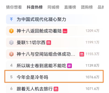 这不,今天一大清早,“今年会是冷冬吗?”登上了抖音热榜。
