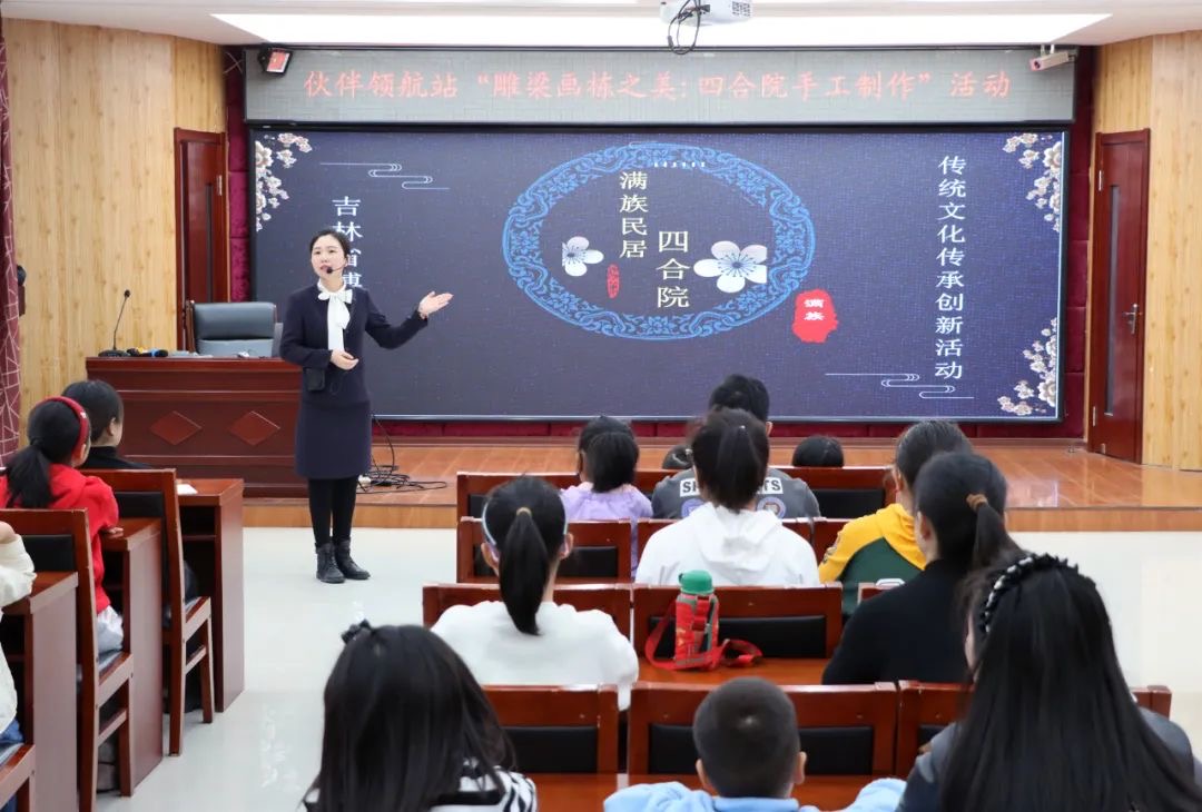 活动中,讲解员为大家带来“满族民居之四合院”教育活动,“口袋房,万字炕,烟筒坐在地面上”,这句话形象、集中反映了满族民居独特的建筑风格。古建景致,百年历史,记忆中的满族四合院在黄新然的讲解中,变得立体、生动和有趣。