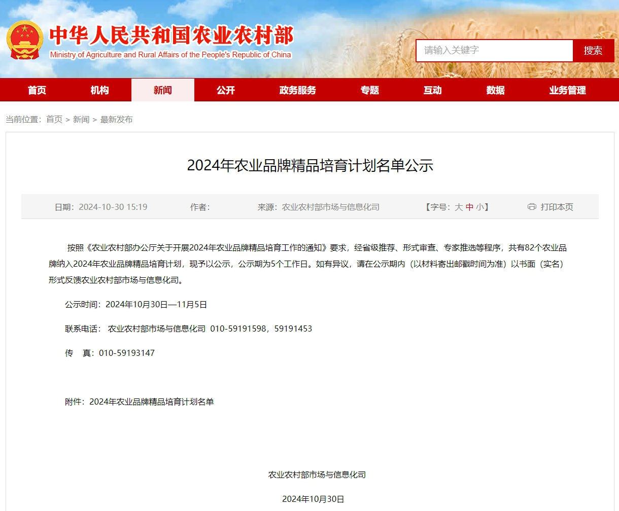 截图来源于中华人民共和国农业农村部网站