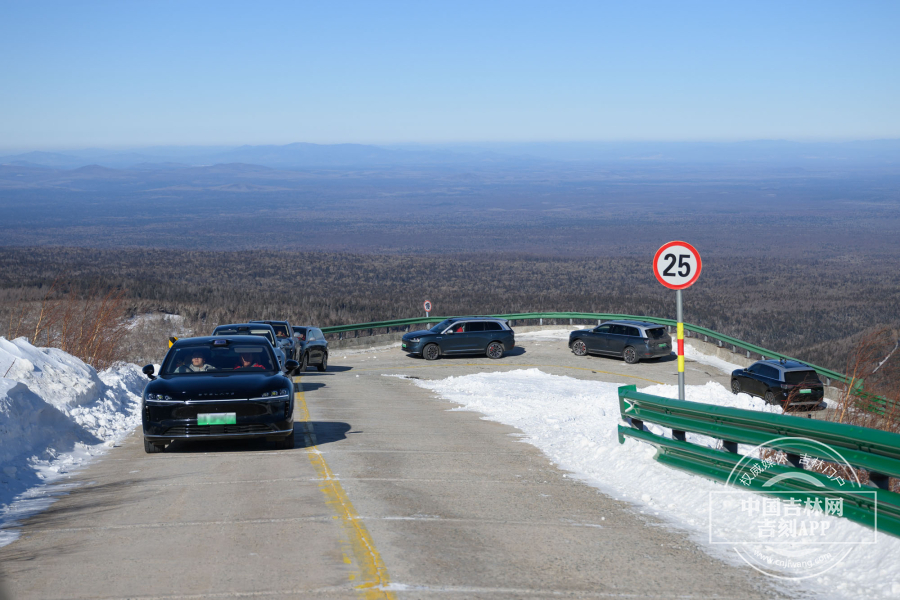 鸿蒙智行车队行驶在东北“巴音布鲁克”-长白山