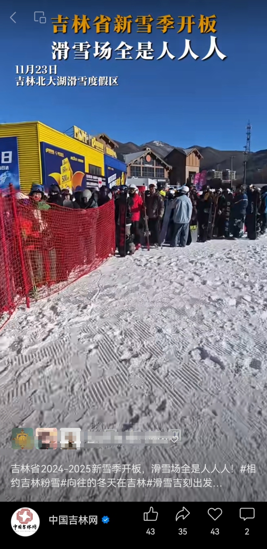 今日,吉林省新雪季正式开板,在吉林北大湖滑雪度假区,来体验滑雪的游客络绎不绝。