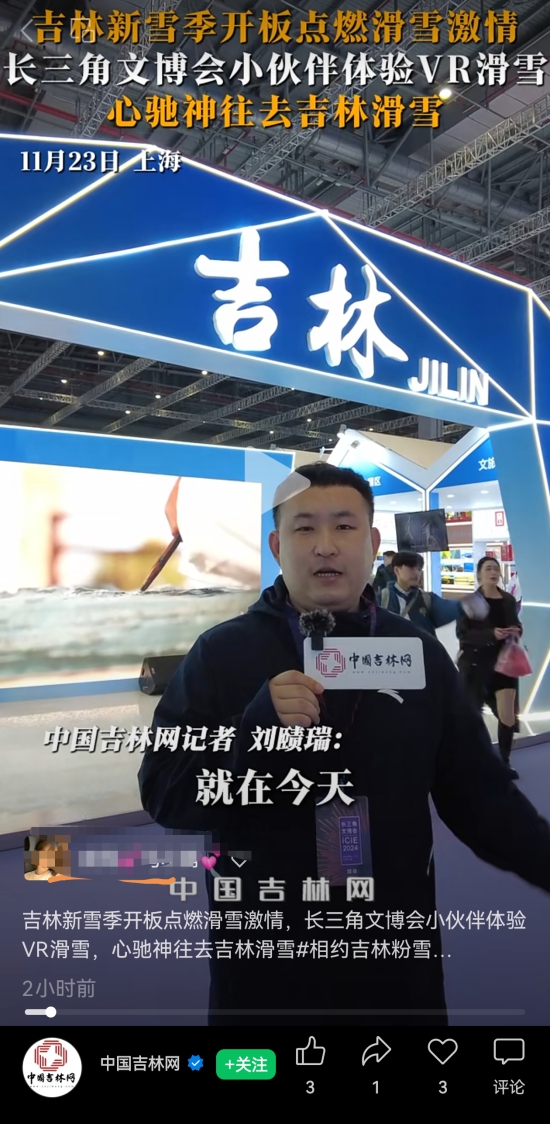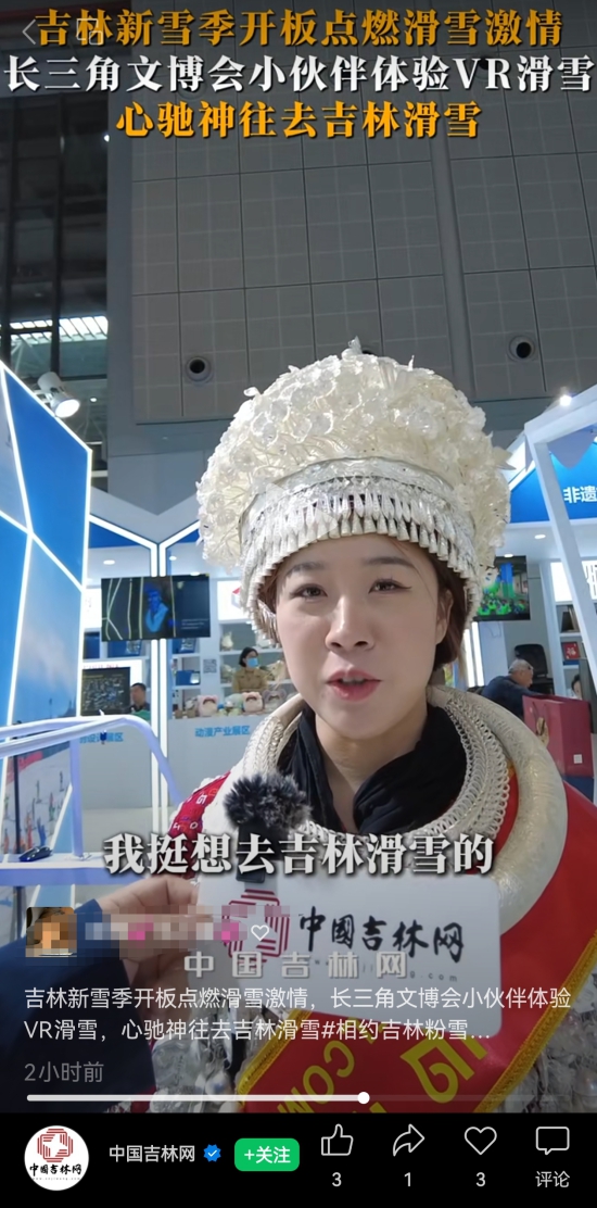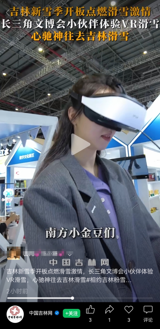 在上海文博会现场,很多小伙伴通过体验VR滑雪。