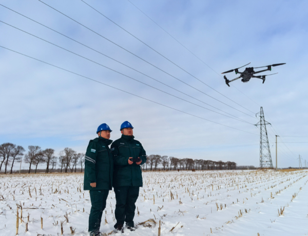 精准监测,科技赋能。国网松原供电公司迅速响应,精心部署雨雪冰冻工作,依托“电力 气象”合作模式,运用巡检中心智能化、数字化手段,通过“无人机 远程”方式实时监测重要地段雨雪冰冻灾害情况,建立“一线路一观冰点”,在15处重点覆冰舞动区域提前布置观冰哨。