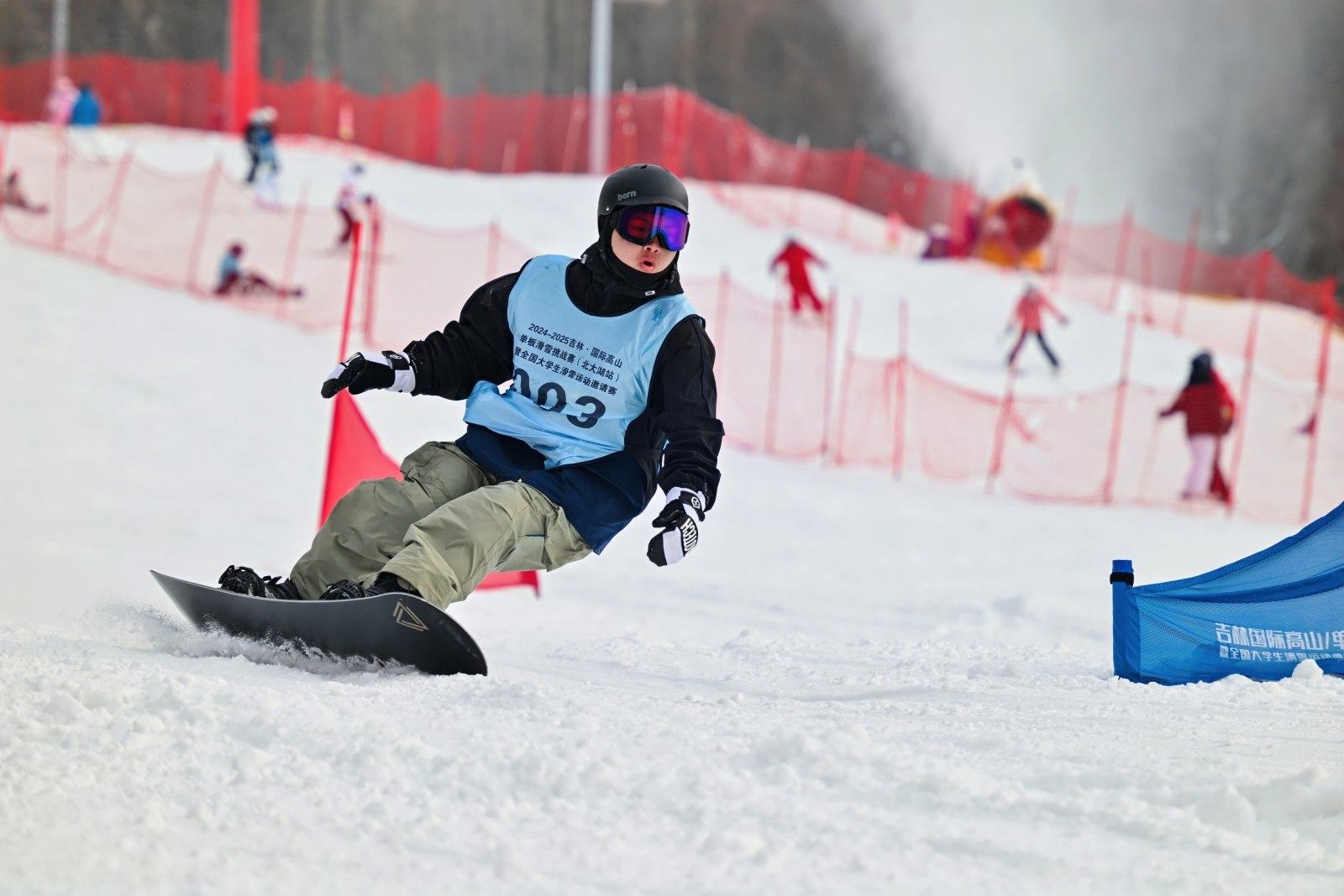 来自全国26所高校117名运动员在高山滑雪大回转、单板滑雪平行大回转项目中展开激烈角逐。