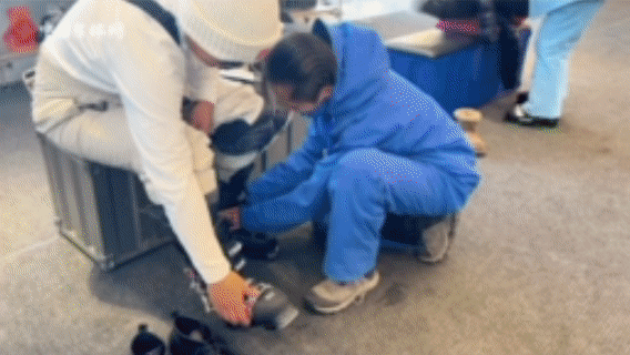 教练超耐心,先教摔倒,再教刹车。而振昂虽然勇气可嘉,但“天赋”着实一般,一会儿在坡上挣扎着不敢下滑,一会儿又在下滑过程中失去平衡,摔得东倒西歪。
