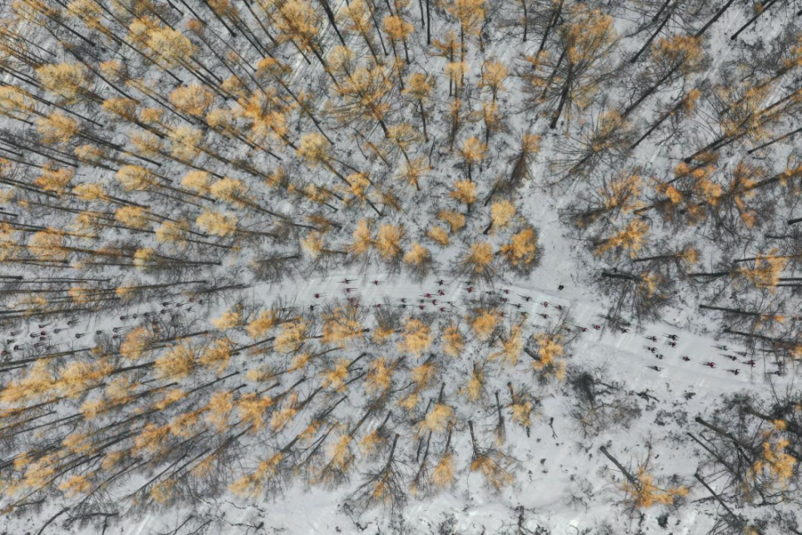 2024年1月4日,参赛选手在比赛中(无人机照片)。新华社记者 许畅 摄