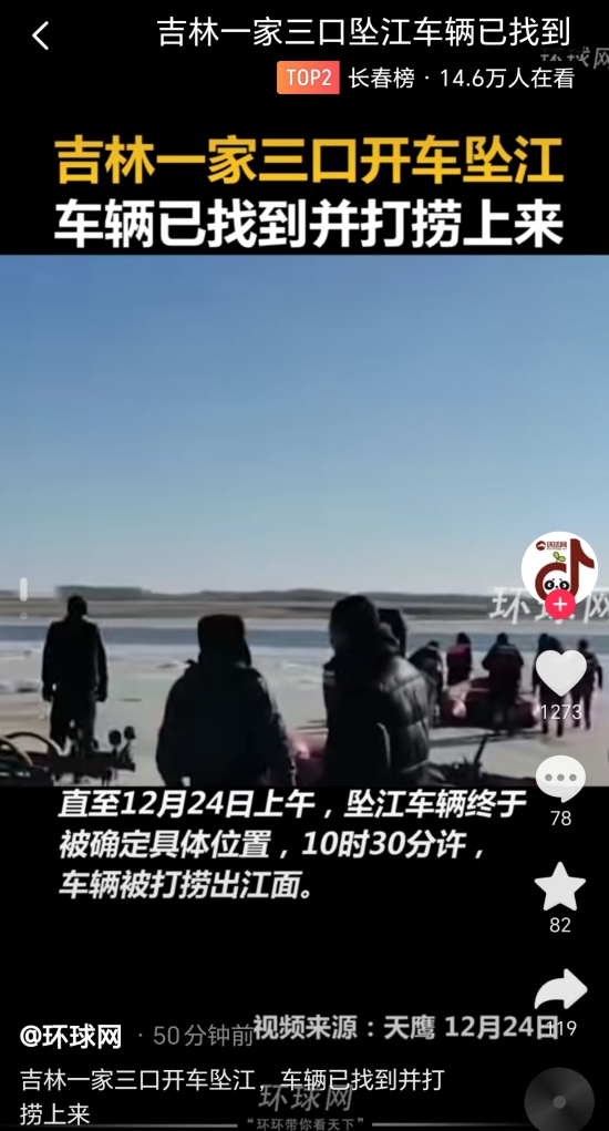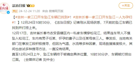 直至12月24日上午,坠江车辆终于被确定具体位置,10时30分许,车辆被打捞出江面。