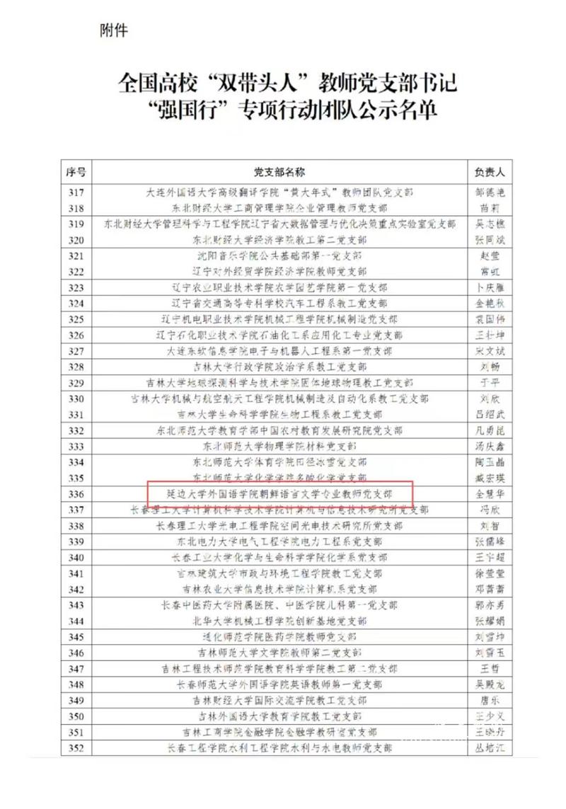 这是一个成立于1949年的党支部,这是一个为吉林省120多个边境村提供过义务支教的团队——这就是延边大学外国语学院朝鲜语言文学专业教师党支部。日前,该党支部入选全国高校“双带头人”教师党支部书记“强国行”专项行动团队名单。