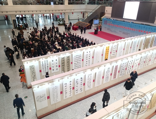 12月29日上午,由长春师范大学和吉林省书法家协会共同主办的“意与古会——长春师范大学书法专业成立十周年书法邀请展”在吉林省图书馆正式开幕。长春师范大学党委书记刘多、吉林省书法家协会主席韩戾军、吉林省图书馆馆长张勇出席会议并致辞。长春师范大学副校长胡德超、刘鹏飞、陈爱梅,吉林省书法家协会副主席孙德伟、宋旭安等书家及省内部分高校书法专业院系负责人出席开幕式。长春师范大学书法教育研究中心主任苏显双主持开幕式。