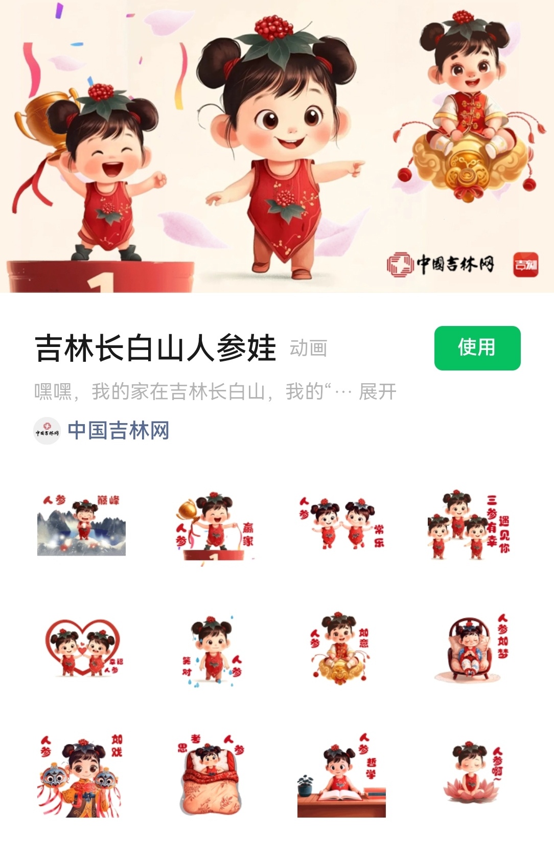 “吉林长白山人参娃”系列表情包