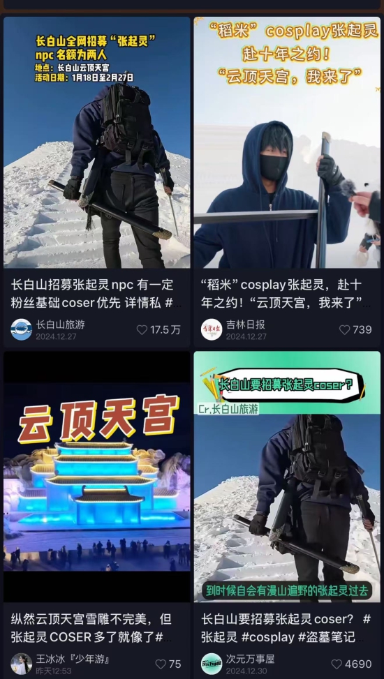 在这儿,稻米们不再只是读者,他们化身为故事的续写者。身着张起灵、吴邪等角色cos服的粉丝们,在雪雕间穿梭,每一步都踏在青春的脉络上。