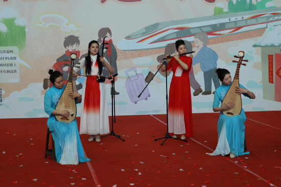 在“我的铁路风景”宣传版前,由国铁沈阳局文联和党委宣传部联合举办的送文化到一线暨“万福迎春”书法公益活动同样精彩纷呈。国铁沈阳局的文艺骨干们用嘹亮的歌声、优美的舞姿和深情的笔触表达着对旅客的祝福。古典器乐表演的沈铁原创作品《文明之花处处开》奏出了文明有礼、友爱互助的出行氛围,沈铁职工文艺骨干创作的歌伴舞《春满人间》讲述了回家团圆的温暖故事,古典舞《春颂》展示了中国传统文化之美。还有古典器乐表演《上春山》、舞蹈《象王行》《戏文说》、原创歌曲《站台》等节目,既形式多样,又内涵丰富。