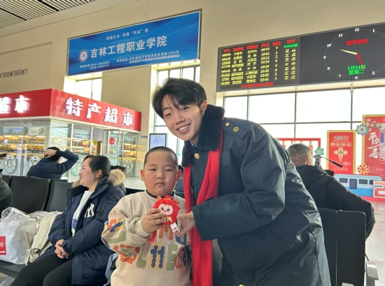 车站还为小朋友们准备了造型可爱、寓意吉祥的新年小礼物,拿到吉祥物的小朋友们兴奋地向家长展示,大人们也被这萌萌的玩偶逗乐,纷纷拍照留念。旅客们与工作人员亲切交谈,感谢他们的新春祝福。