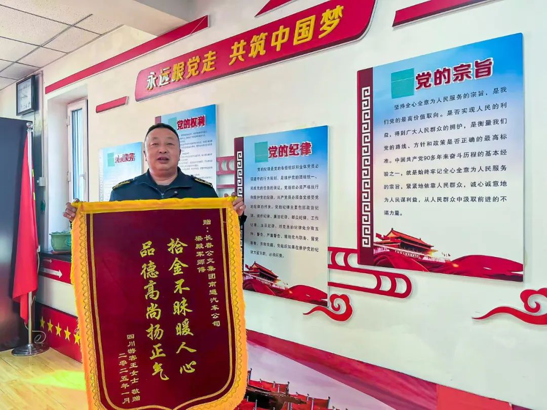 近日,长春公交集团南通公司四车队收到来自四川游客王女士寄来的锦旗和感谢信,感谢冰雪2号线驾驶员梁殿军拾金不昧的暖心善举。