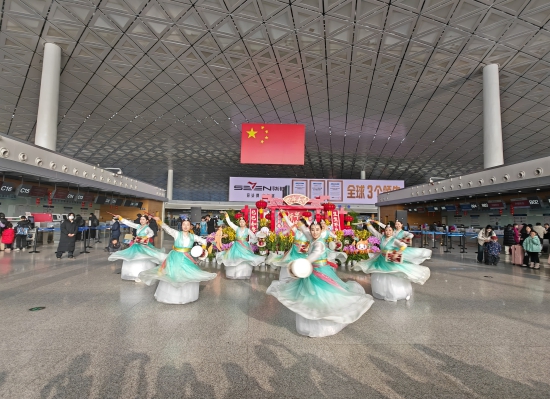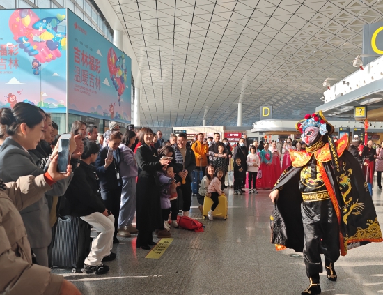 上午10点,长春机场2号航站楼三层出发大厅洋溢着浓厚的节日氛围。随着一曲深情款款的《回家》旋律响起,演出正式拉开帷幕。吉林市群众艺术馆的民乐合奏《沧海一声笑》,以其悠扬动听的旋律,流淌在每位观众的心间。紧接着,吉林市歌舞团带来了歌曲《美丽富饶的松花湖》与《冬来我家看雾凇》,以悠扬的歌声描绘出吉林如诗如画的冬日美景,让旅客仿佛置身于吉林的冰雪世界之中。吉林机场集团地服分公司的舞蹈《骁》,则以刚柔并济的舞姿,赢得了现场观众的阵阵掌声与喝彩。南航吉林分公司地面服务保障部的歌曲《如果你要写风就别只写风》,深情演绎,触动人心。此外,二人转《小拜年》、京剧《大东山水迎天下》、朝鲜族舞蹈《鼓欣》《红太阳照边疆》等具有浓郁吉林地域特色的节目轮番上演,为旅客带来了耳目一新的视听享受。同时,中国铁路沈阳局集团有限公司长春站龙嘉站带来的川剧变脸表演更是精彩绝伦,赢得了现场观众的阵阵惊呼与赞叹。最终,演出在《中国范》那激昂欢快的鼓声中圆满落下帷幕,为旅客们留下了难忘的美好回忆。
